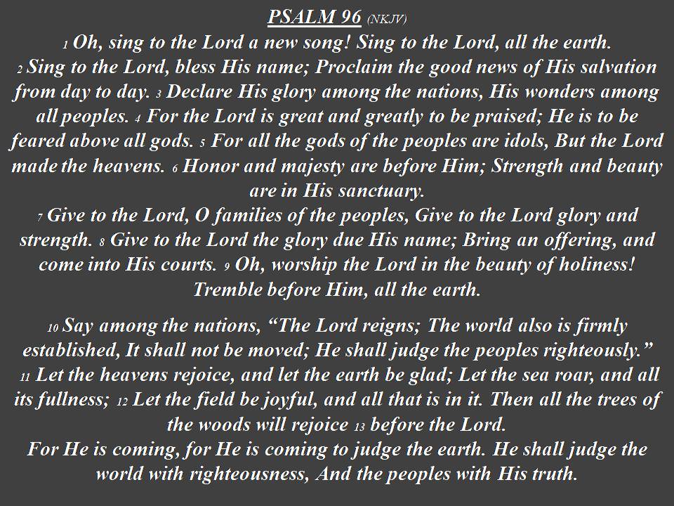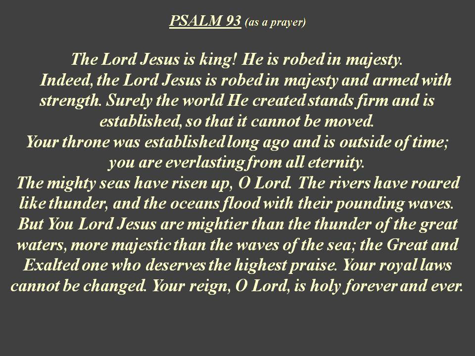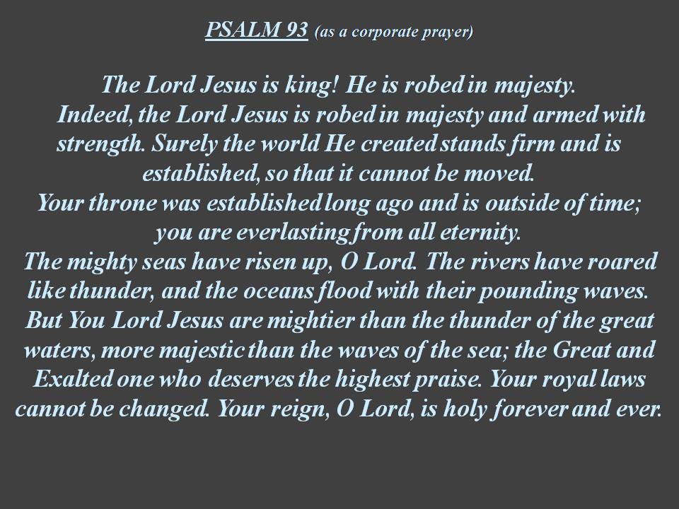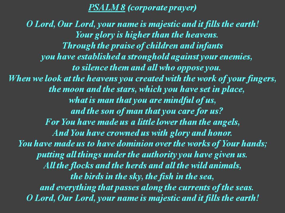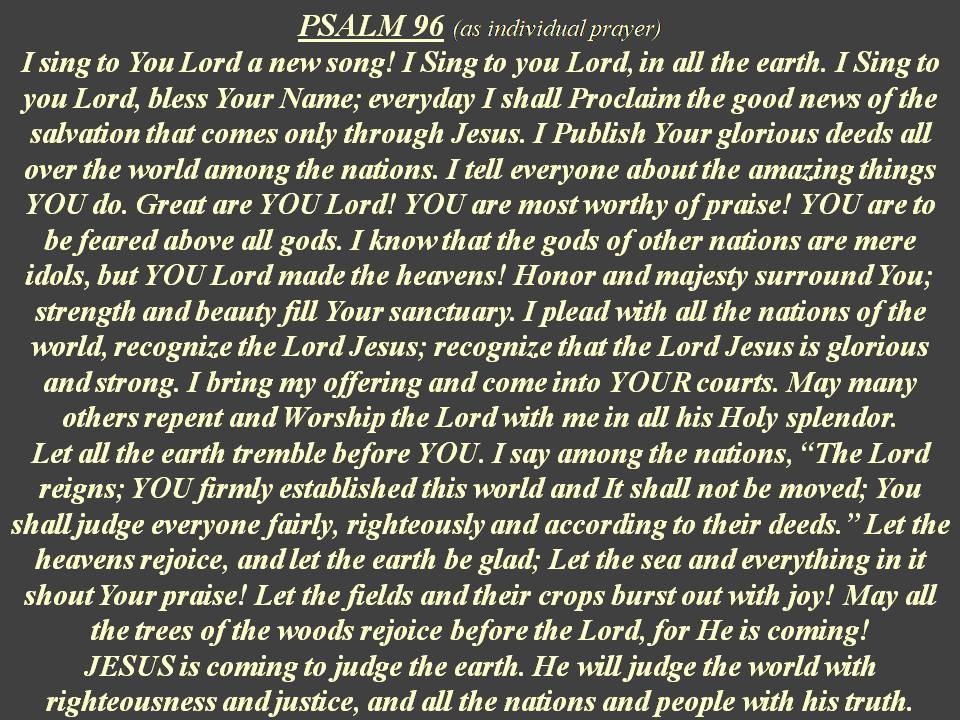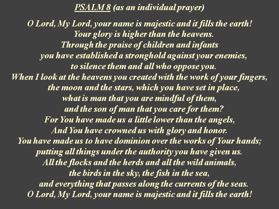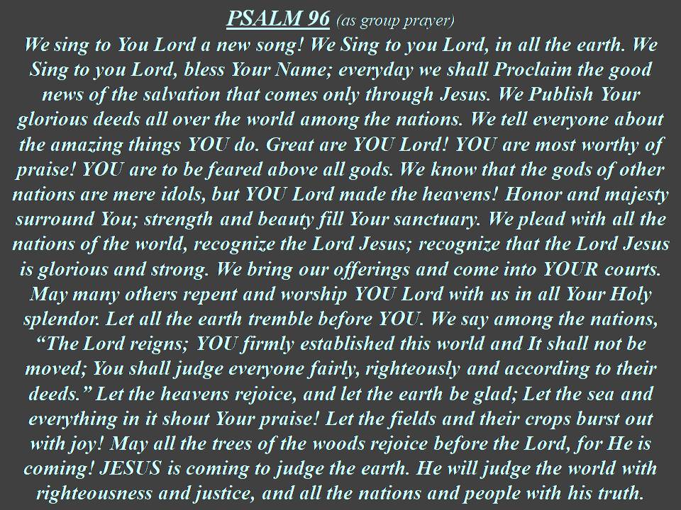 Yellow text = as individual prayer, Blue text = as group prayer, White text = original Psalm